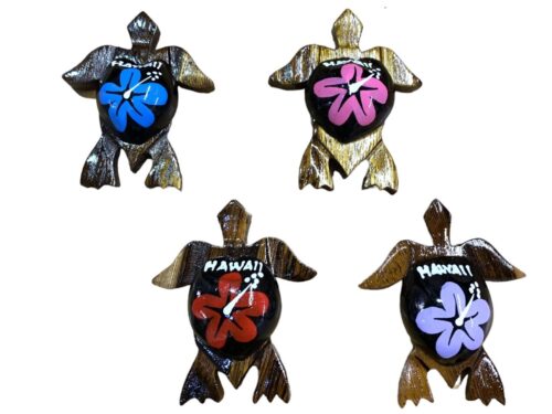 “Hawaii”- 2″ Assorted Colors Hibiscus Wood Turtle Magnet
