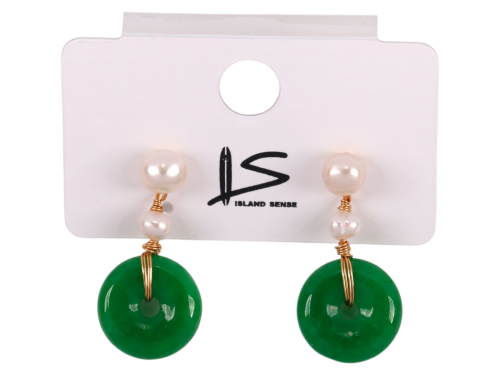 Jade Donut on Fresh Water Pearl on Gold Tone Earrings, MOQ-6