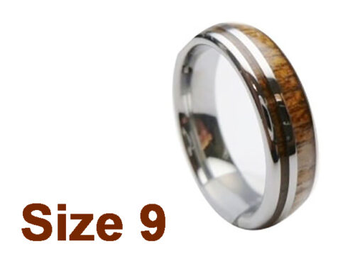 (Size 9) 6mm Koa Wood Inlay Curved Top Tungsten Ring