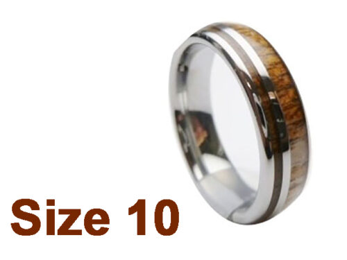 (Size 10) 6mm Koa Wood Inlay Curved Top Tungsten Ring