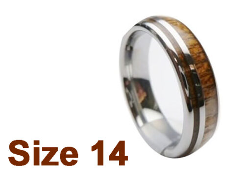(Size 14) 6mm Koa Wood Inlay Curved Top Tungsten Ring