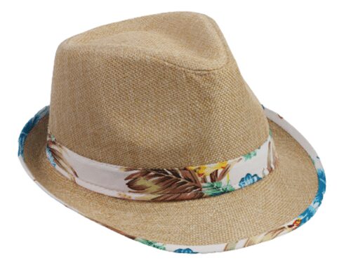 Tropical Nautical Print w/ Black Band Natural Trilby Hat, MOQ-6