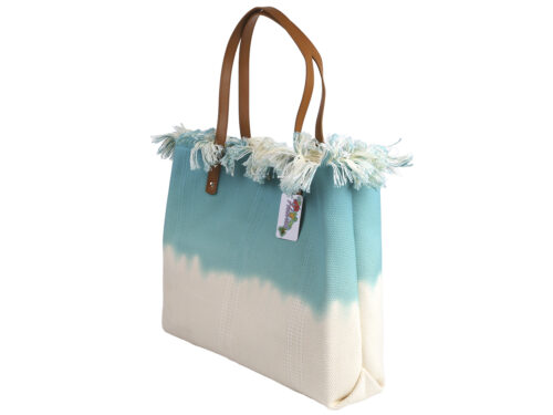 “Aloha” Print Teal & Khaki Fringe Top Tote Bag 50x35x10cm, MOQ-4