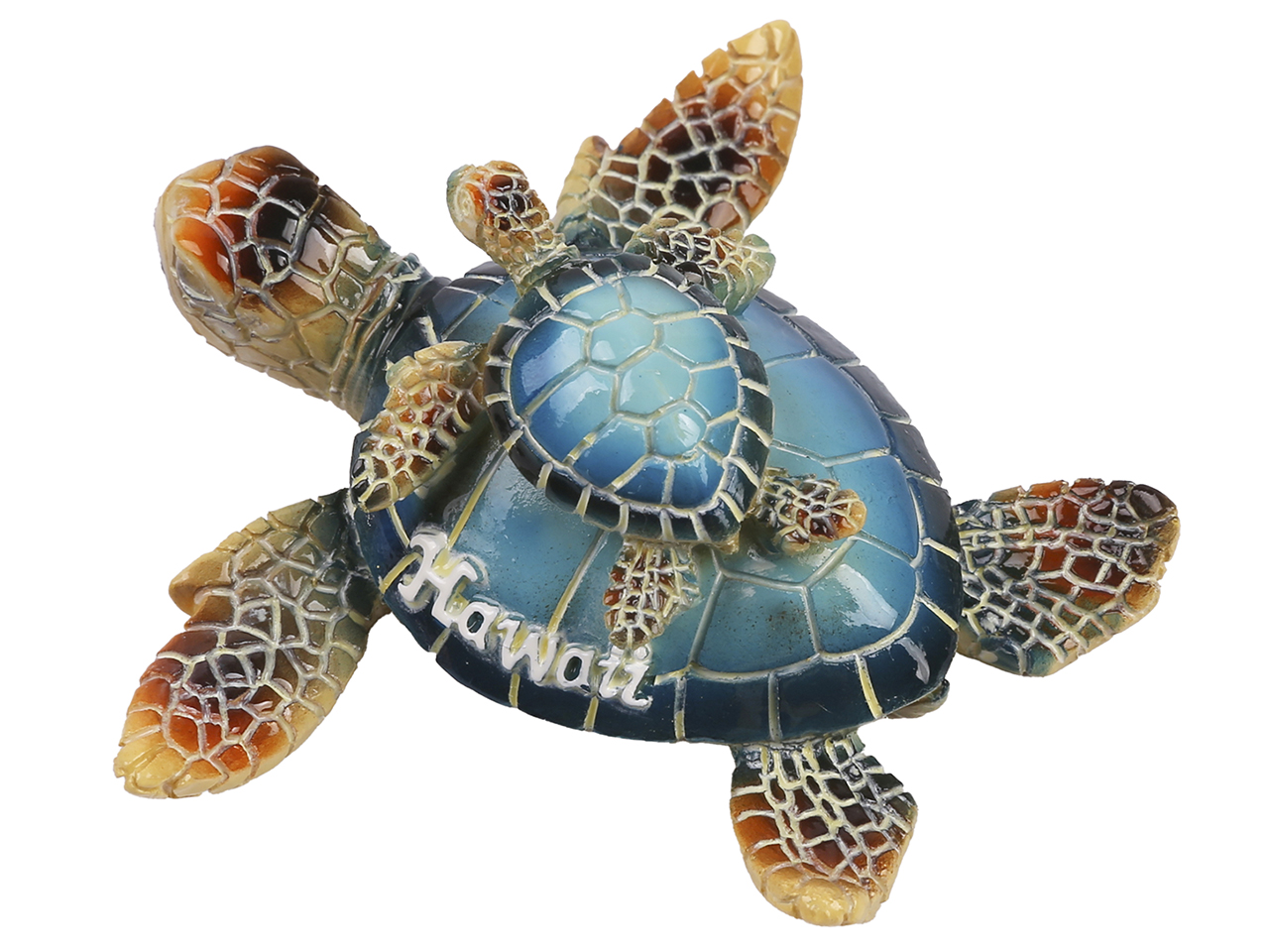 8.5cm “Hawaii” Light Blue Resin Double Sea Turtle Family Figure, MOQ-12