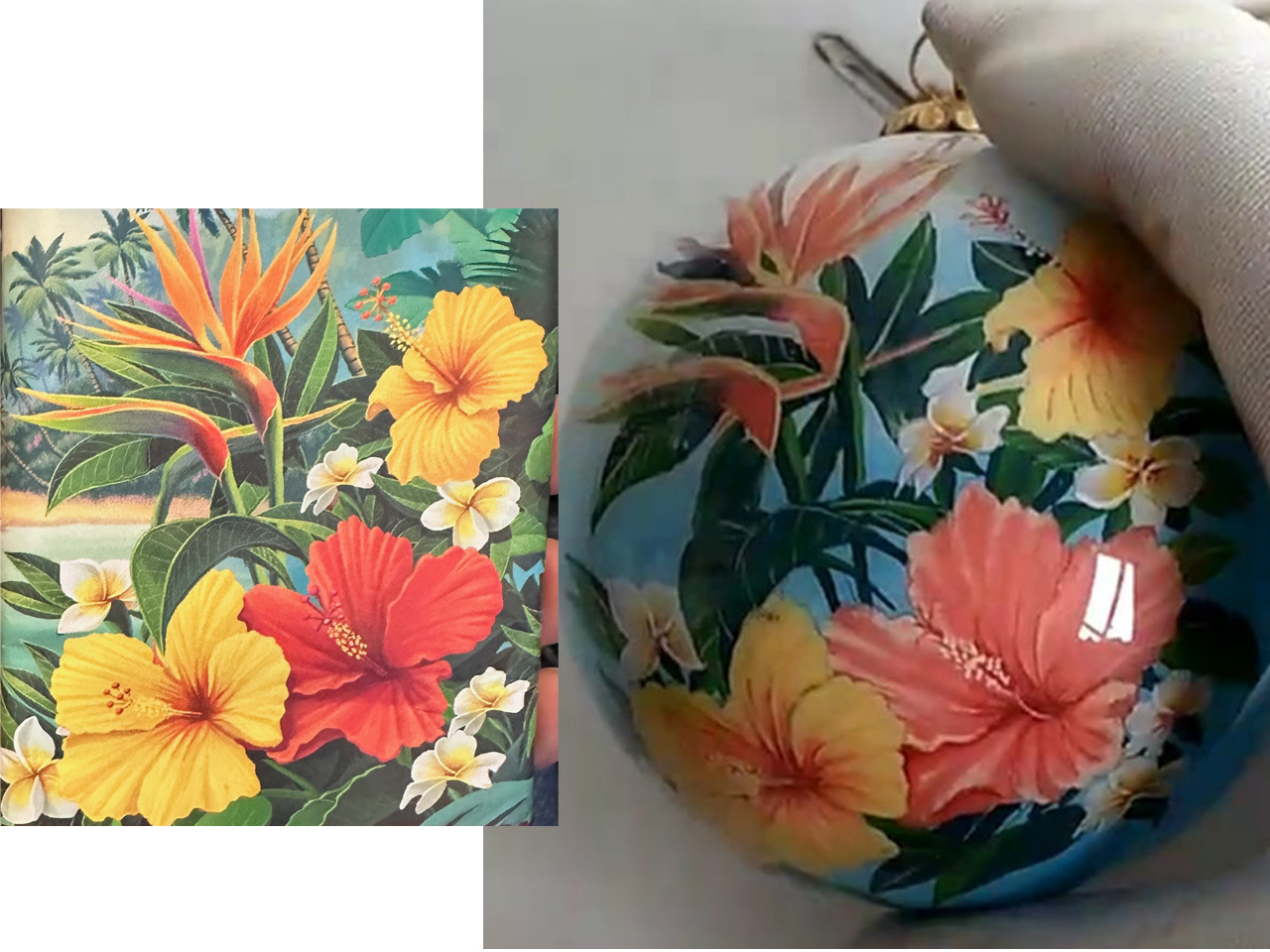 Hand Painted “Hawaii” Floral Christmas Ornament