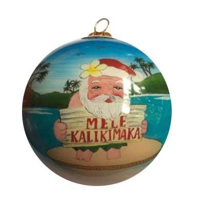 Hand Painted “Hawaii” Mele Kalikimaka Santa Christmas Ornament