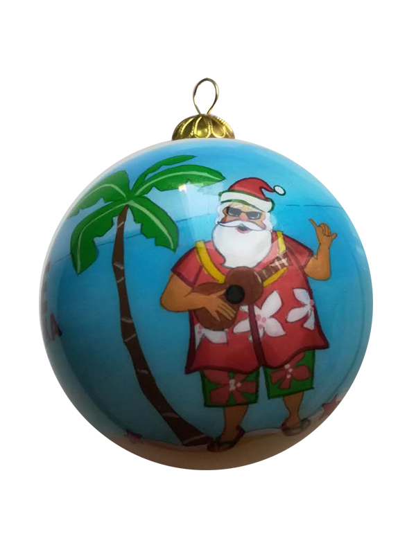 Hand Painted “Hawaii” Santa At The Beach Christmas Ornament