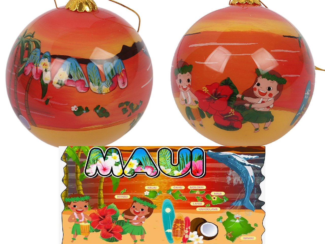 Hand Painted “Maui” Beach Scene w/ Hula Dancer Ornament, 54/case
