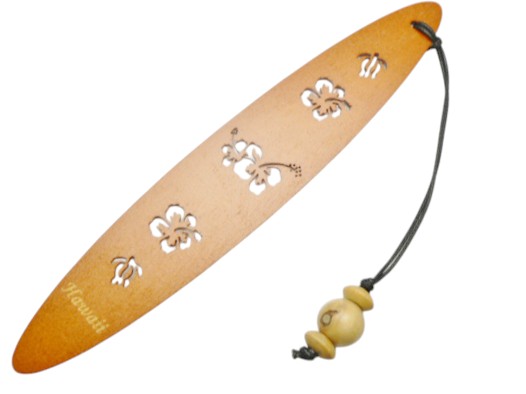 “Hawaii” Turtle & Hibiscus Cutout Wood Bookmark 17x3cm