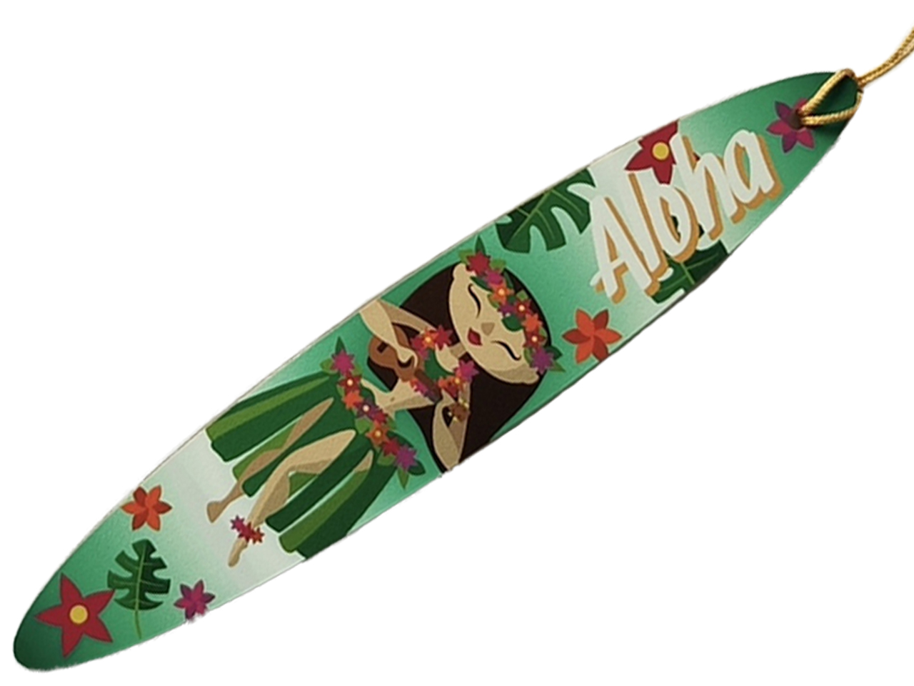 “Aloha” Hula Girl Print Wood Surfboard Bookmark w/Tassel, MOQ-12