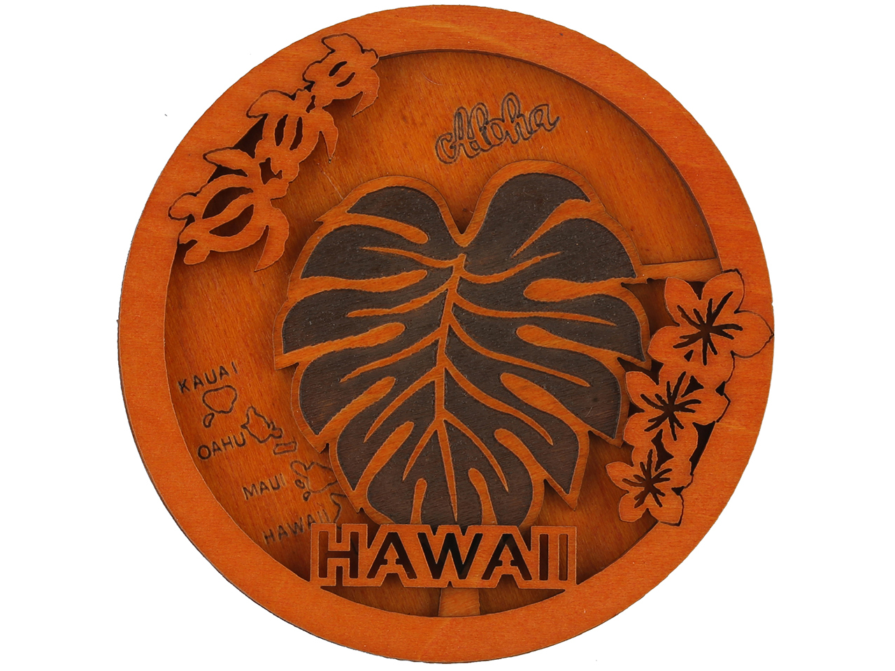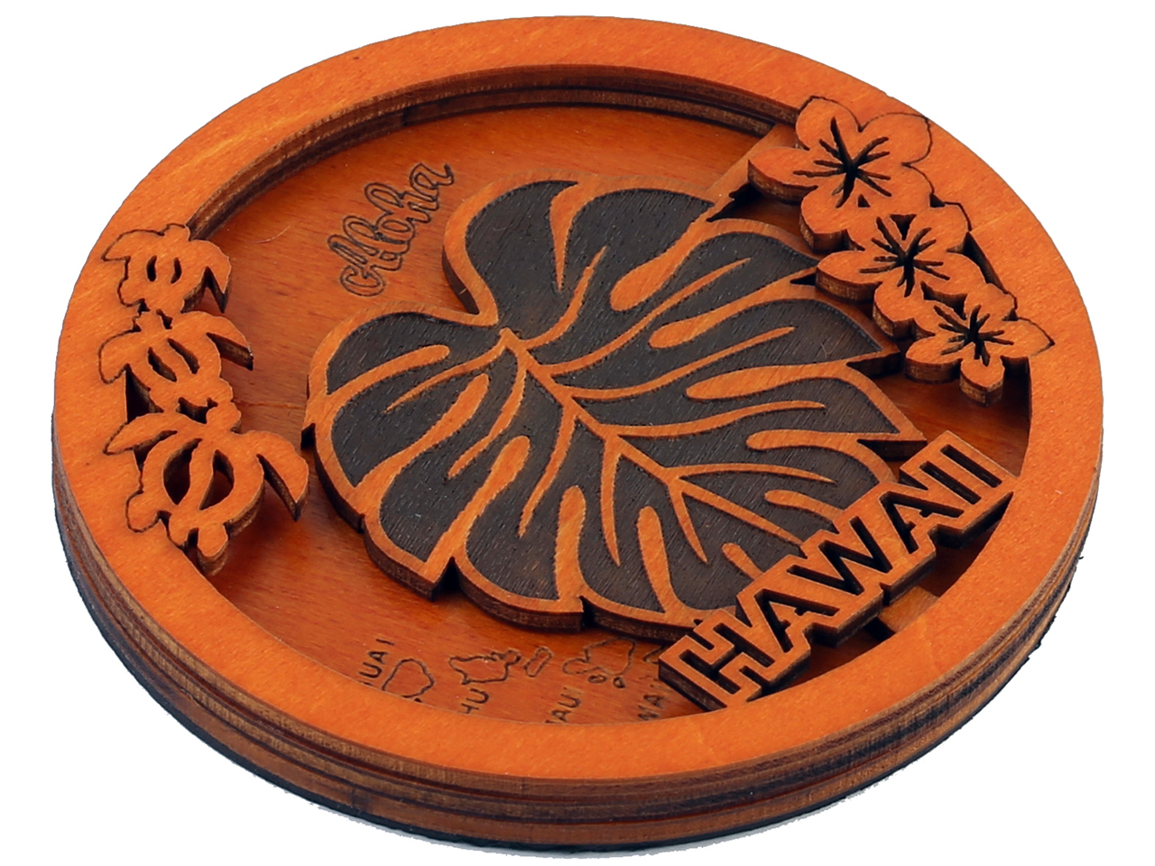 “Hawaii” Monstera Leaf & Island Map Wood Magnet 7cm / 2.75″