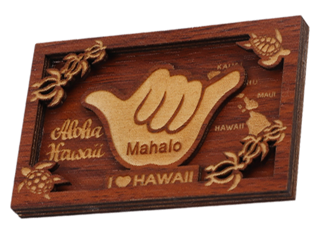“Aloha, Hawaii” Shaka Rectangle Wood Carved Magnet