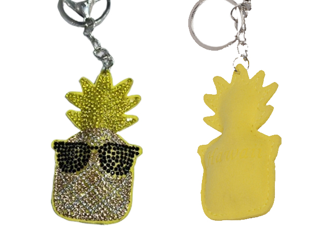 “Hawai” Pineapple w/ Sunglasses Puff Rhinestone Keychain MOQ-6