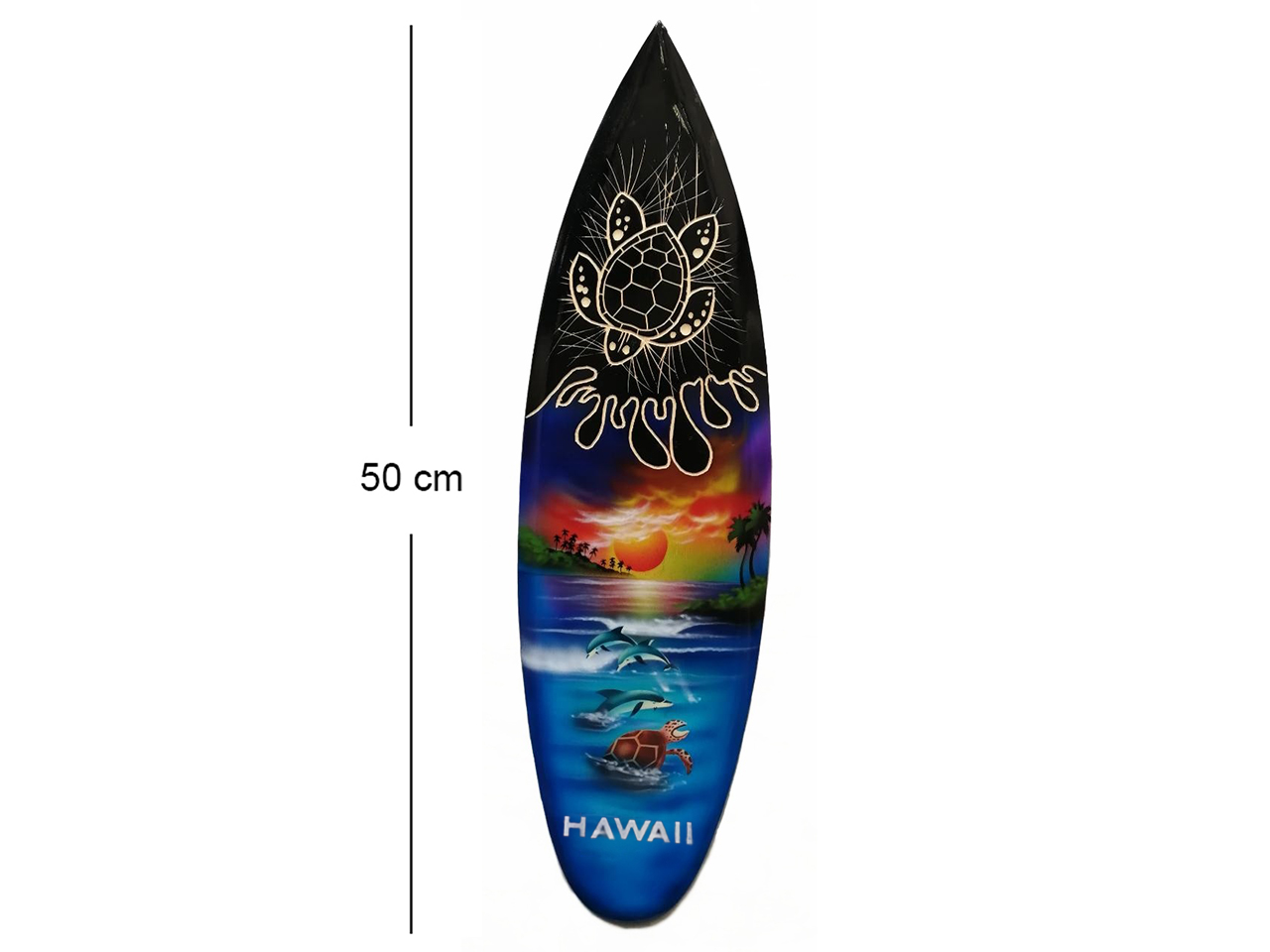 50cm/20″ “Hawaii” Wood Carved & Airbrushed Turtle Combo Surfboard