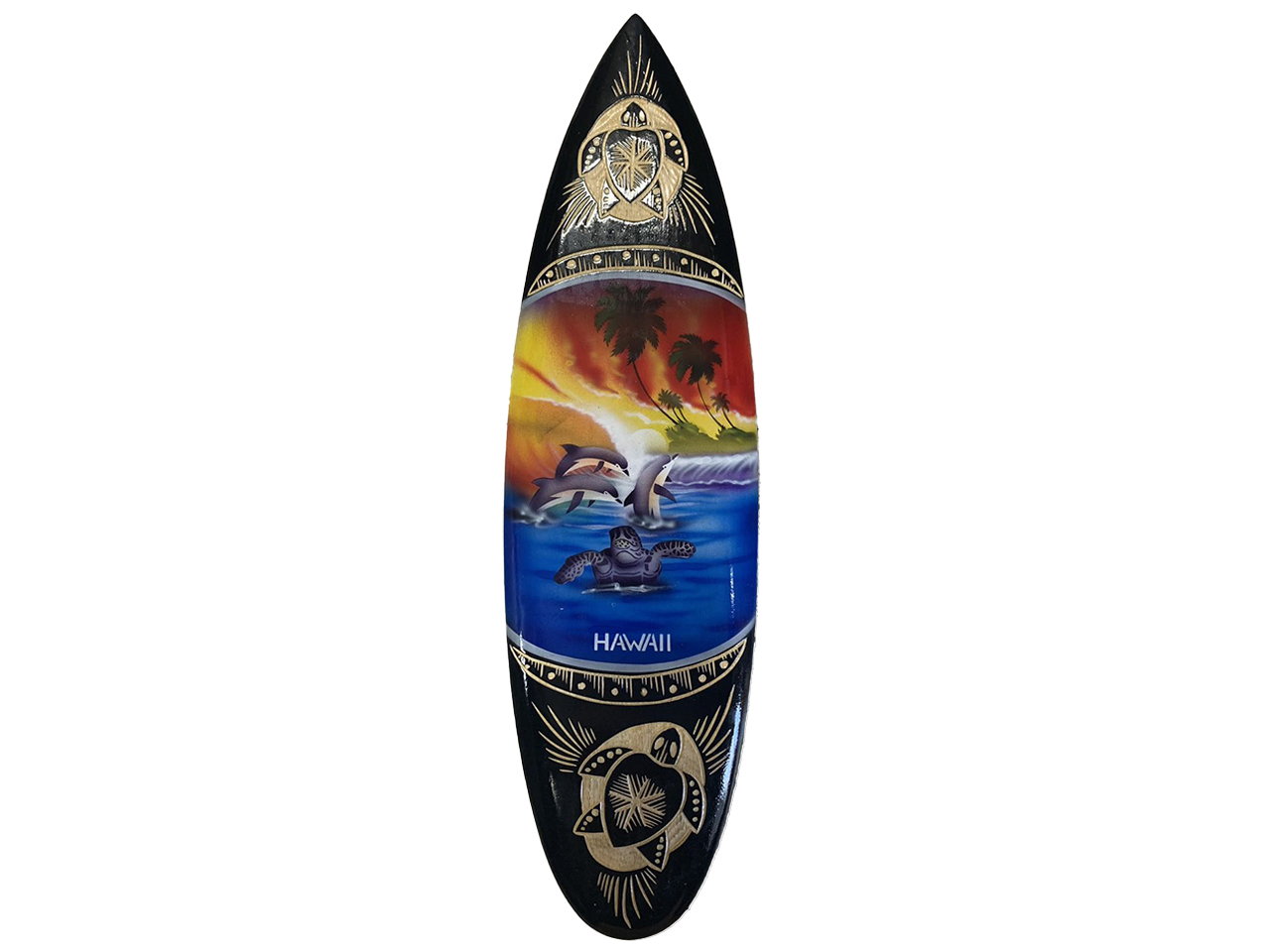 50cm/20″ Wood Carved w/ Turtle & Airbrush Dolphin Surfboard