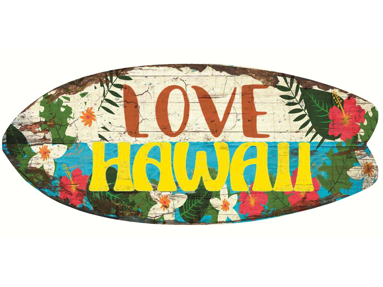 Metal Hawaii Surfboard Hang Sign 14″x6″ (35×15.5cm)