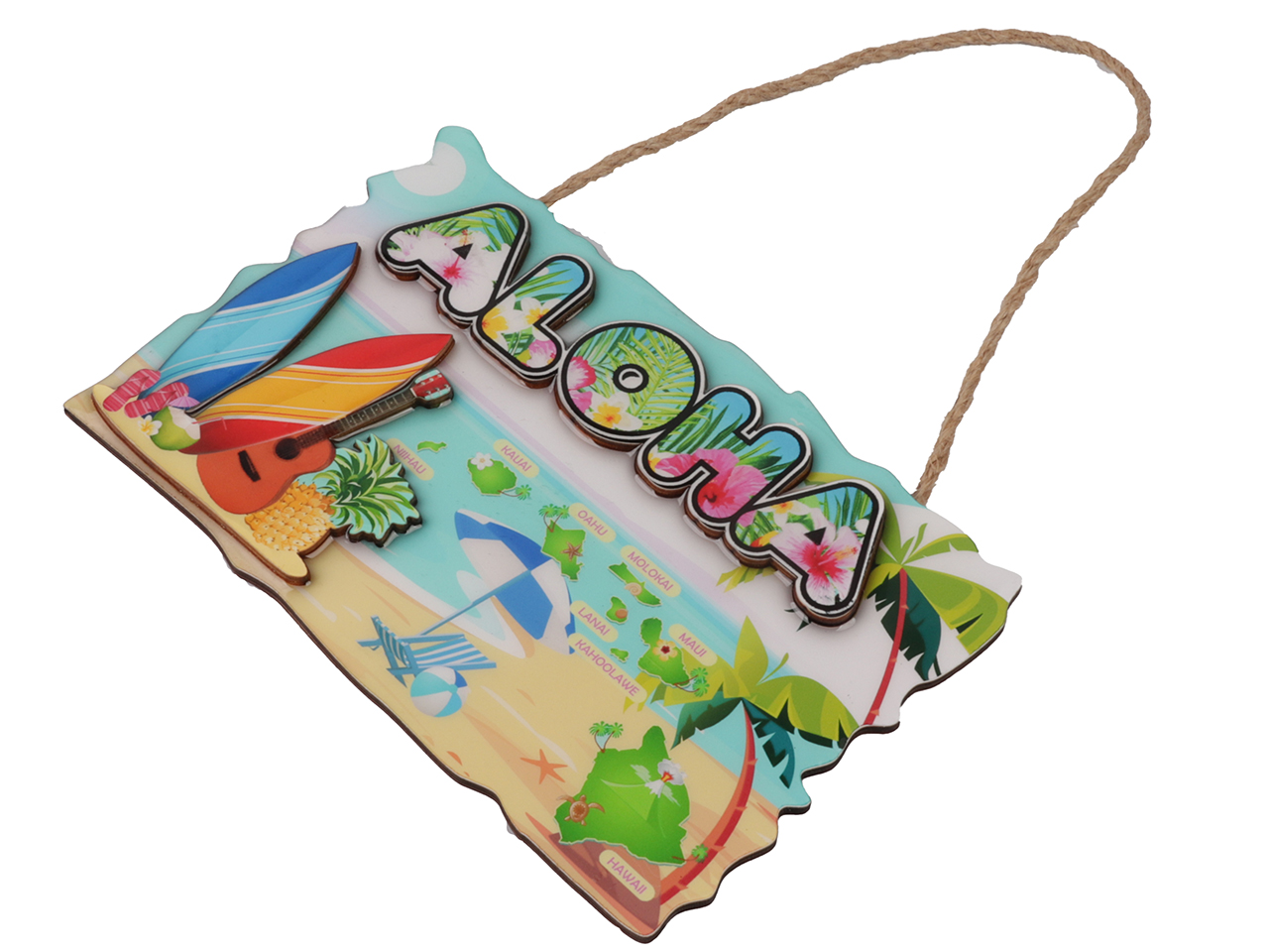 “ALOHA” Beach Scene Hang Sign 13x20cm, 60/cs, MOQ-6