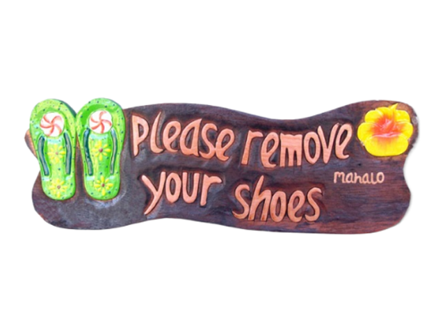 16″ Please Remove Your Shose Mahalo Green Flip Flop Hibiscus