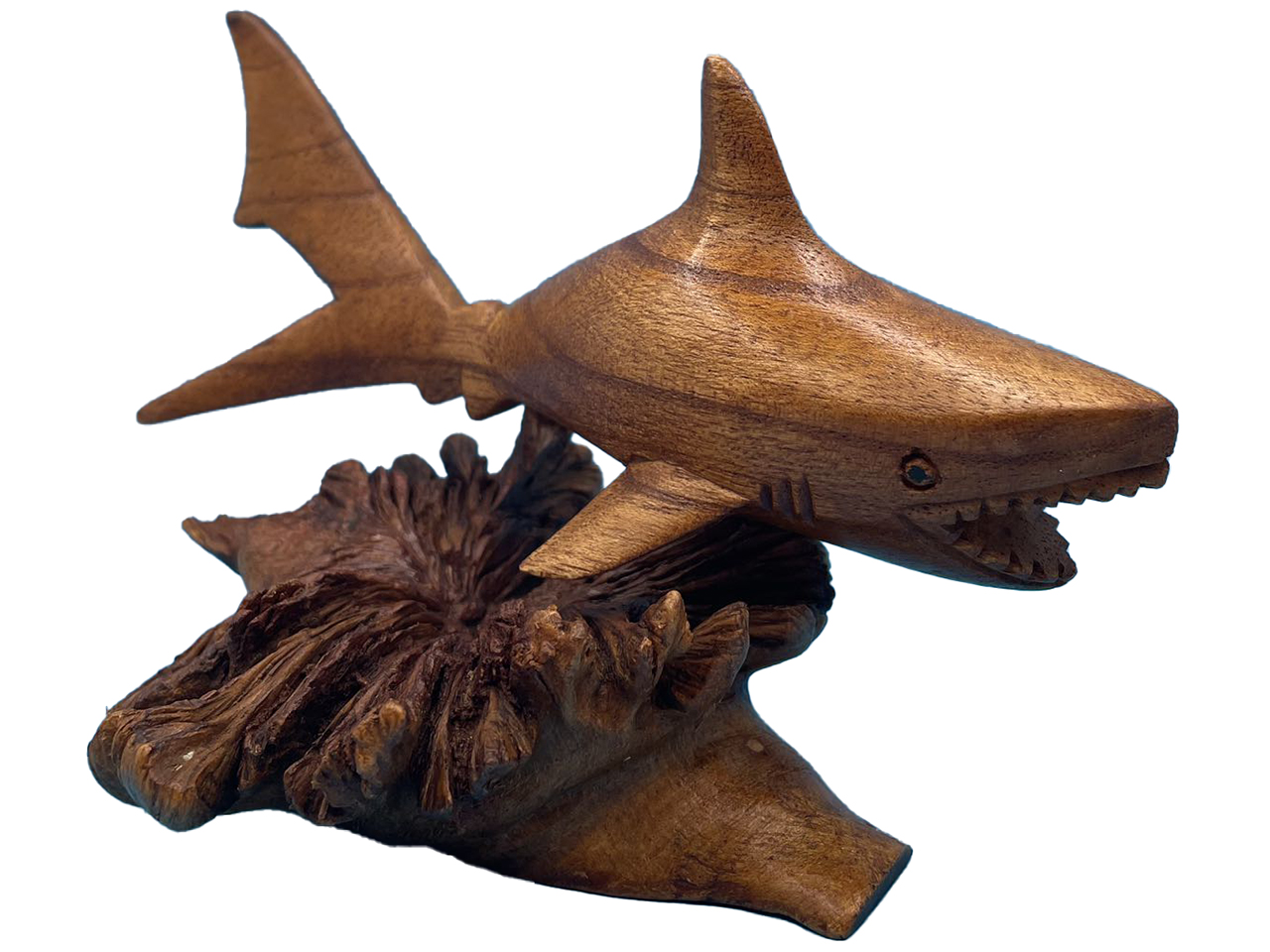 6″ /15cm Wood Carved Shark w/ Parasite Wood Base
