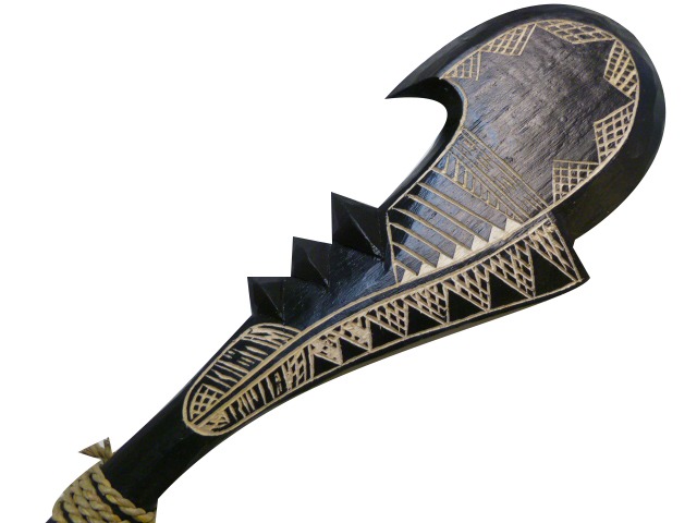 50 cm Wood Carved Hawaiian Style Hook War Club Weapon in Black