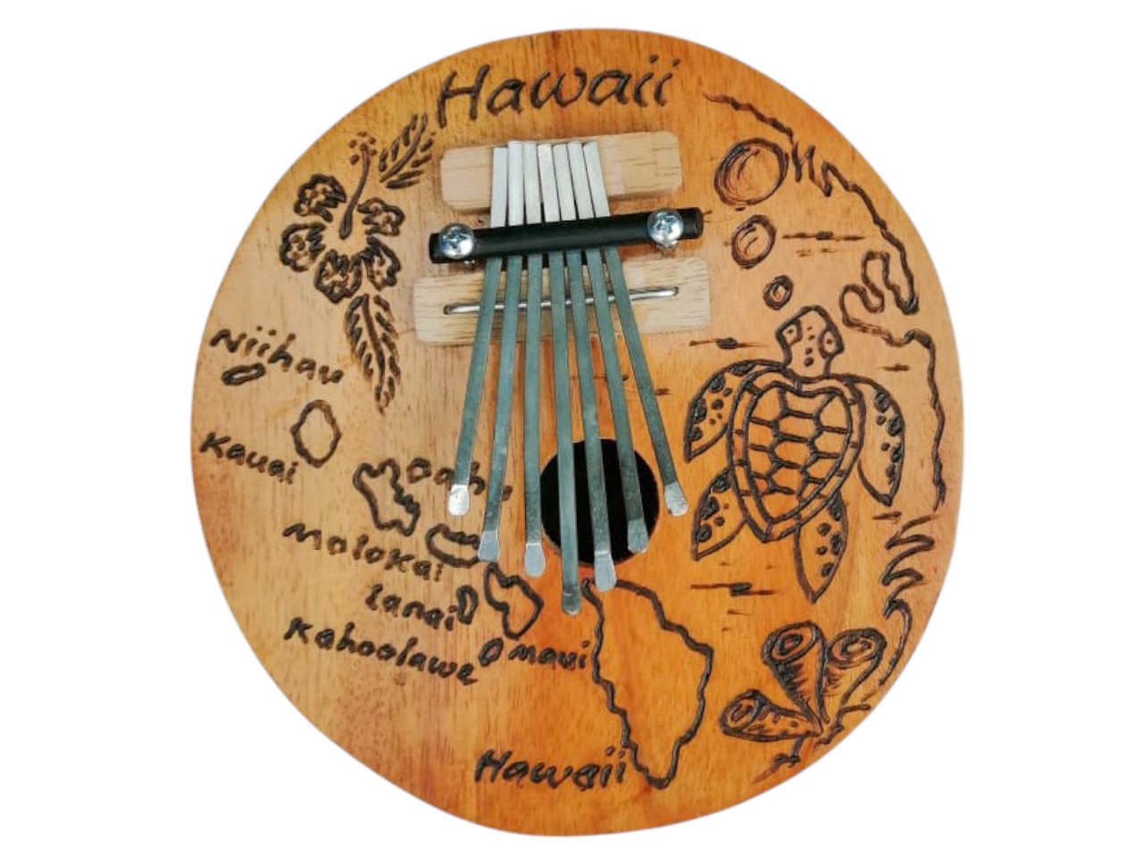 Wood Carved Hawaii Island Map & Turtle Karimba