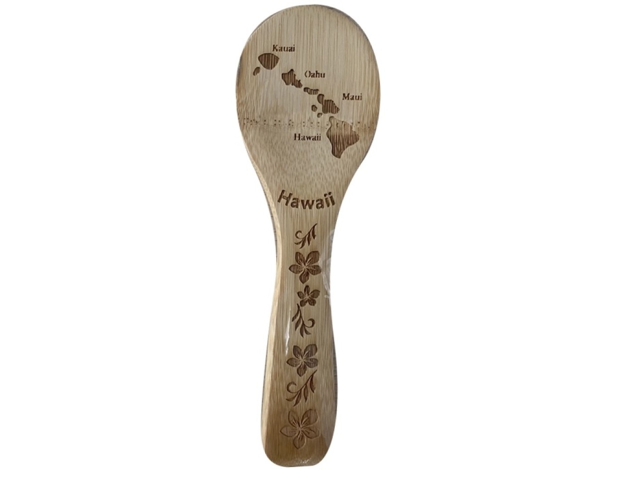 “Hawaii” Bamboo Rice Paddle w/ Island Map Carving