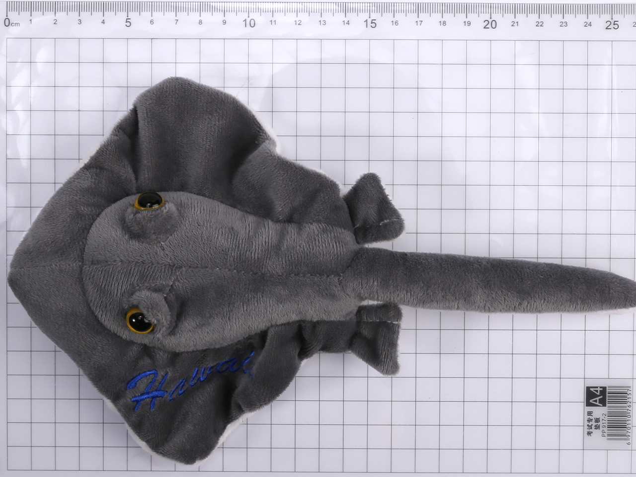 27cm “Hawaii” Embroidered Grey Sting Ray / Manta Ray Plush Toy, MOQ-6