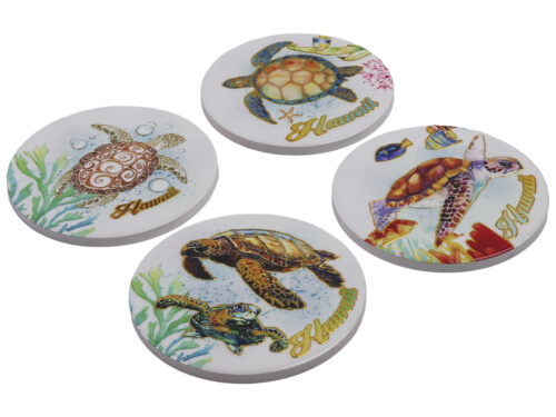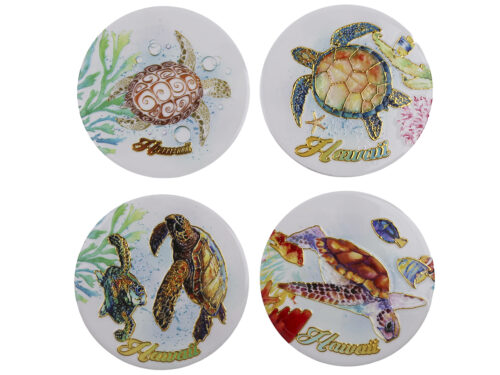 4.25″ Assorted Ceramic Turtle Hawaii Coaster, 4/set, 144/case