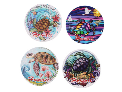 4.25″ Assorted Hawaii Floral 3D Gold Ceramic Coaster, 4/set, 144/case