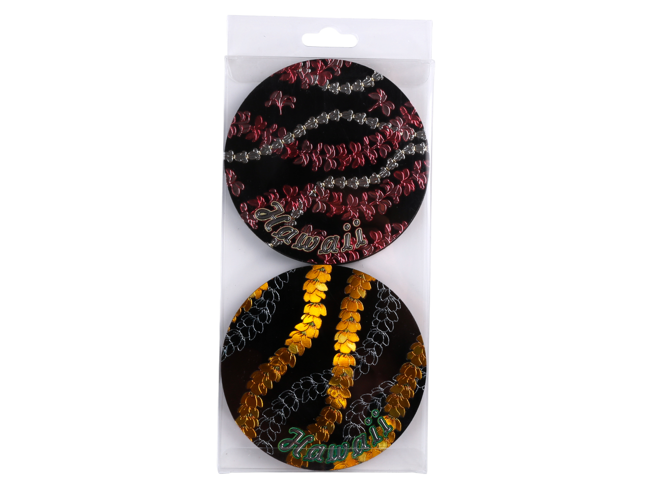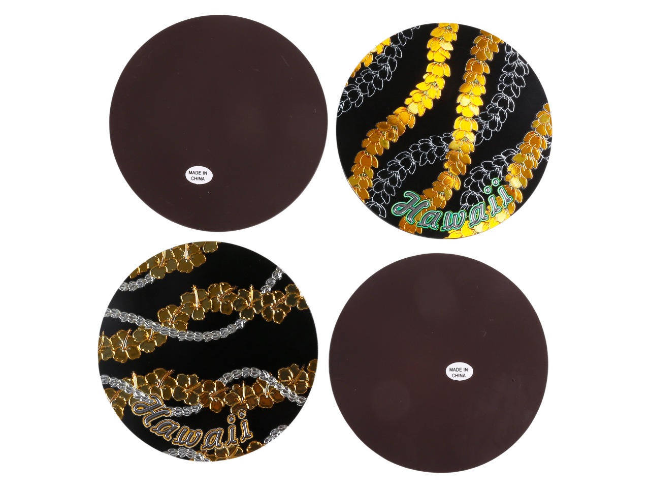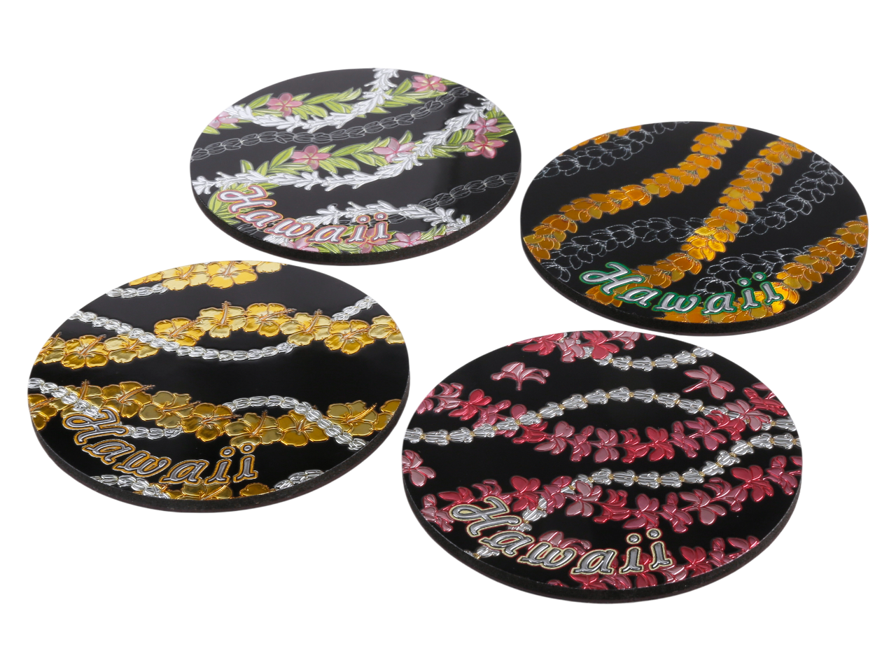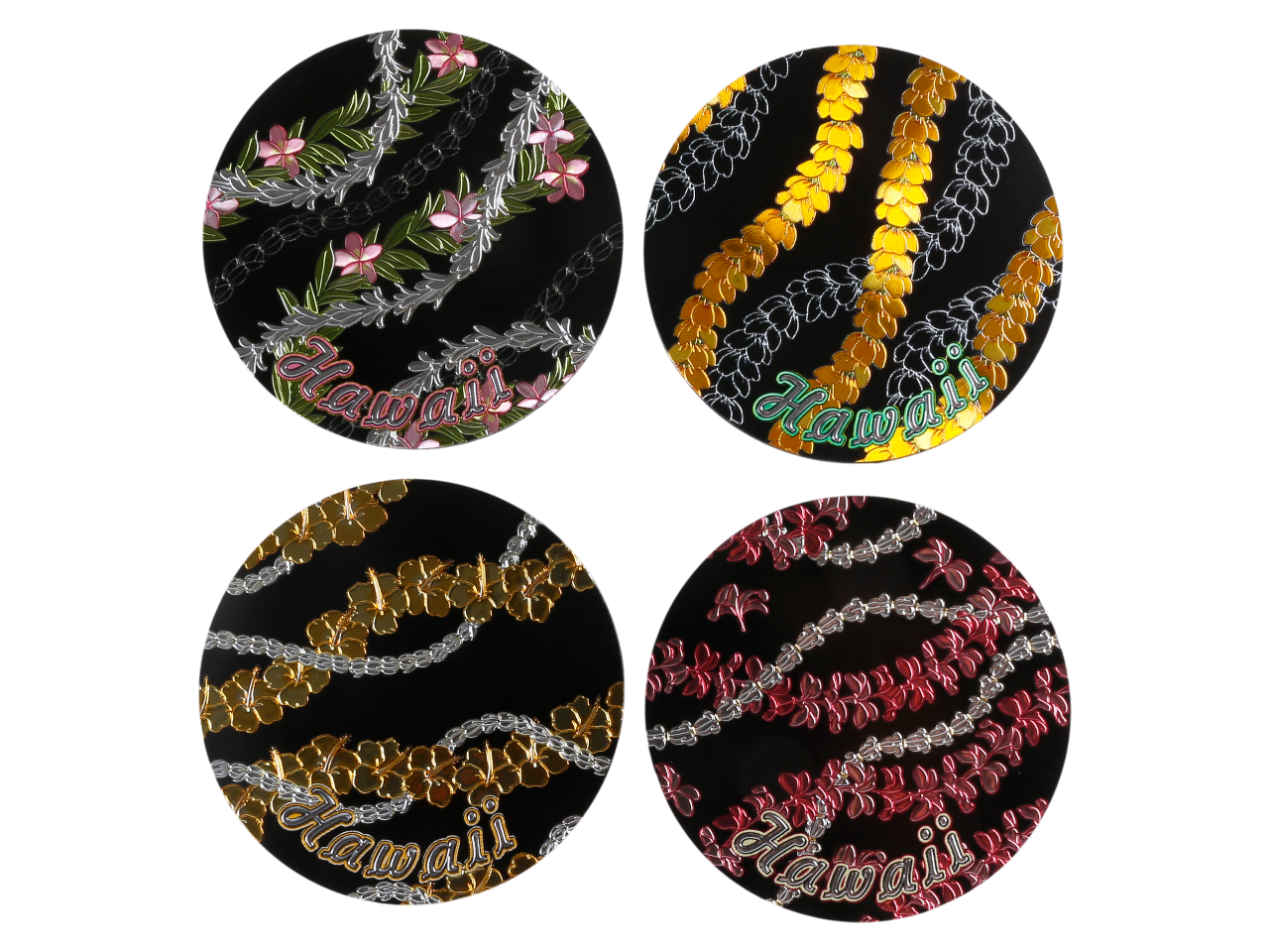9cm “Hawaii” Black Background Pikake Foil Magnet / Coaster, MOQ-12pcs/3sets