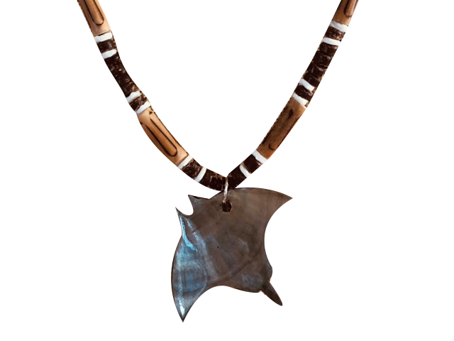 MOP Manta Ray w/ 18″ Coconut & Wood Beads Necklace