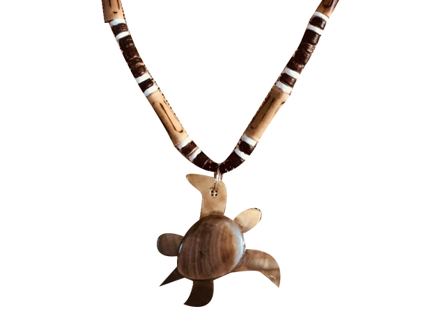 MOP Turtle w/ 18″ Coconut & Wood Beads Necklace