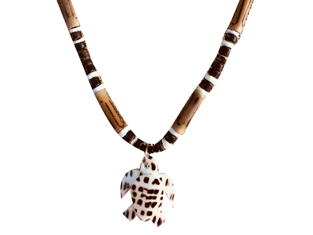 Shell Turtle w/ 18″ Coconut & Wood Beads Necklace