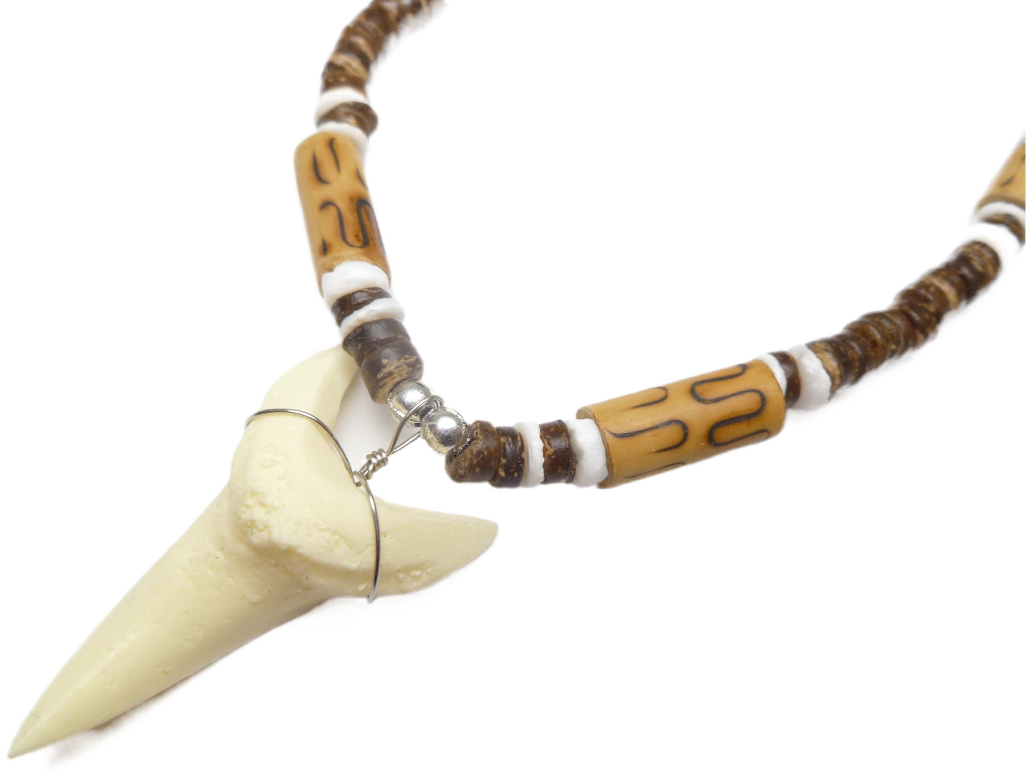 Bone Powder Shark Tooth w/ 18″ Coconut & Wood Beads Necklace