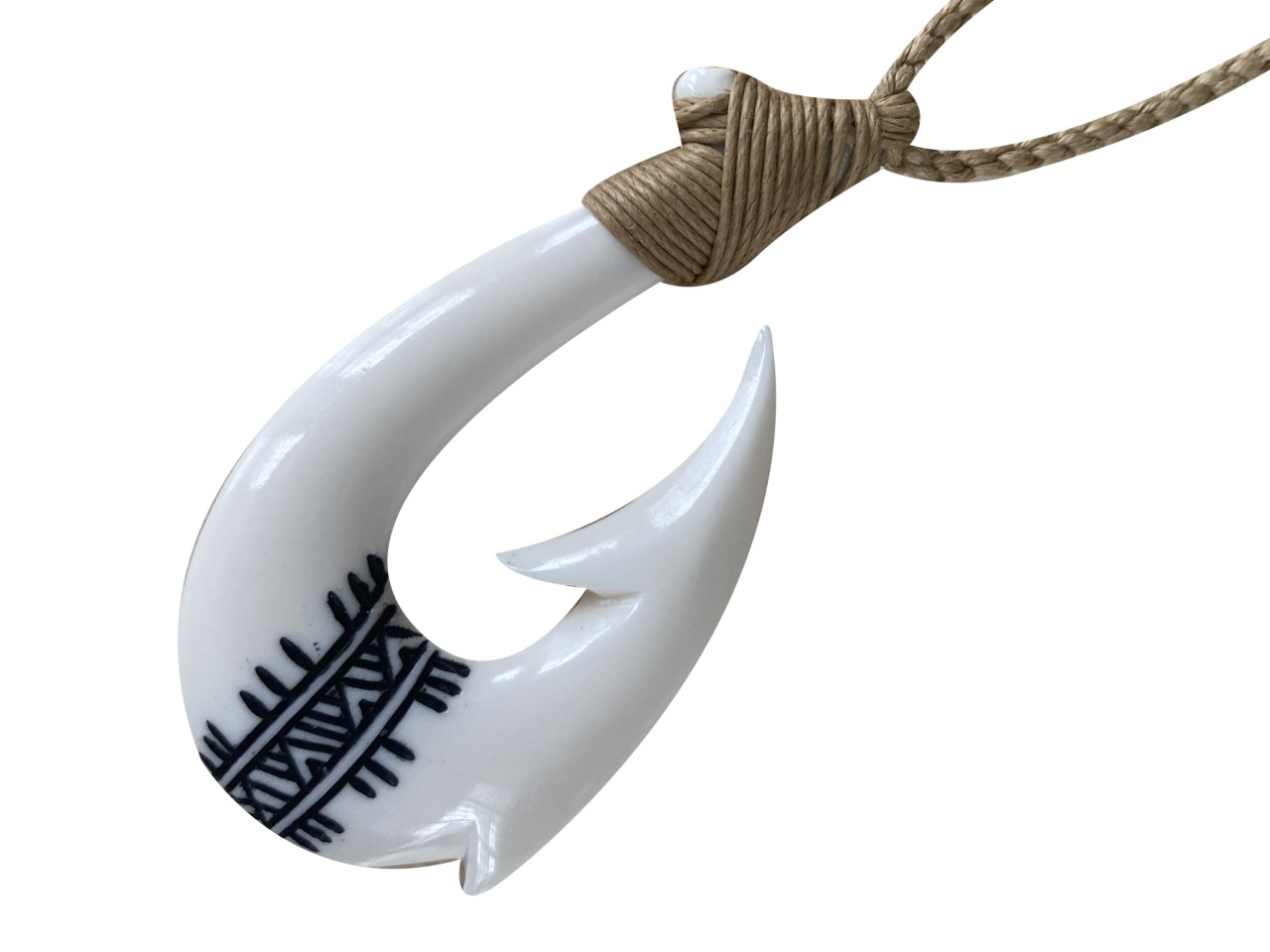 32x59mm, Buffalo Bone Fishhook w/ Adjustable Hemp Cord, MOQ-6