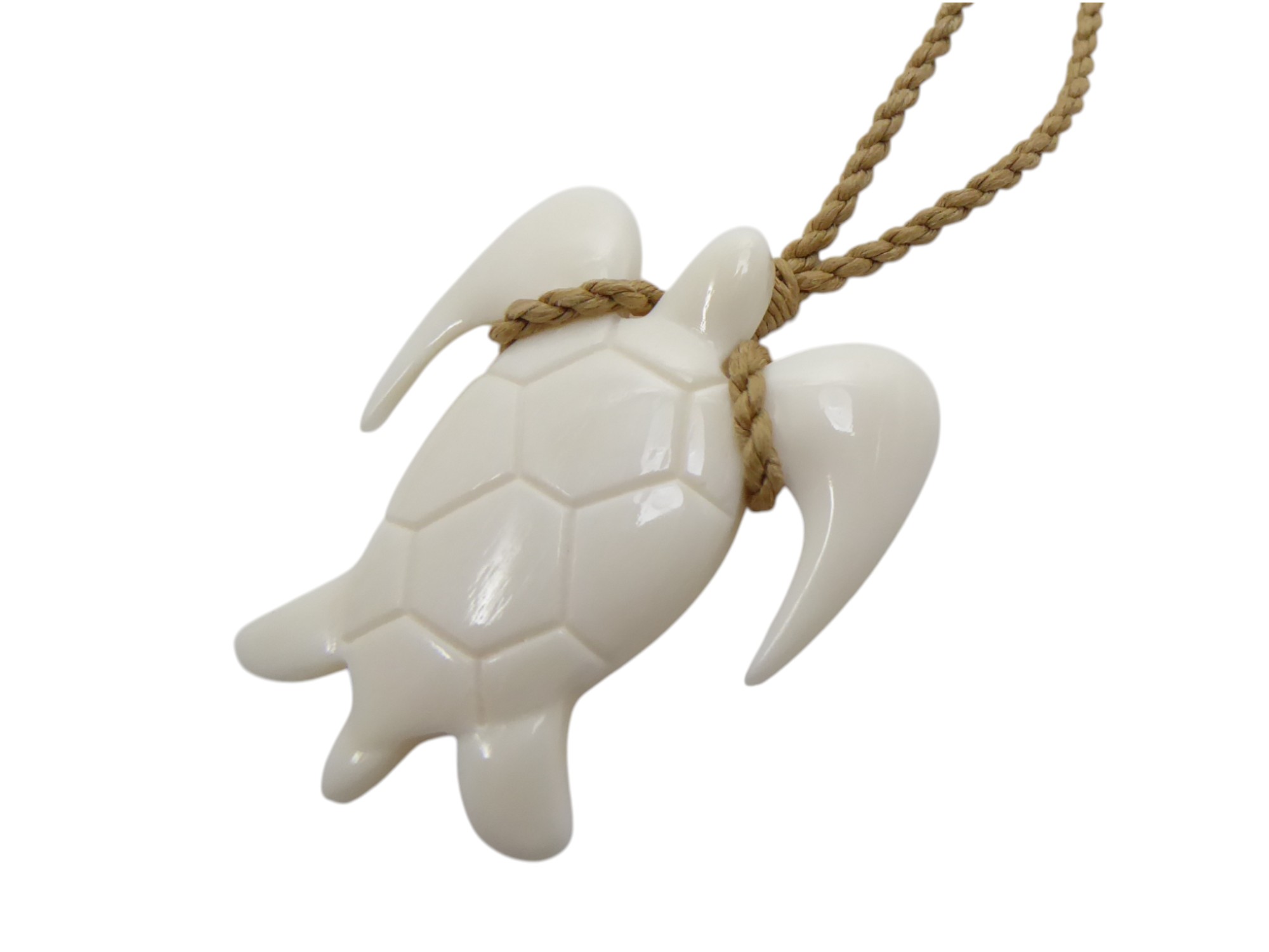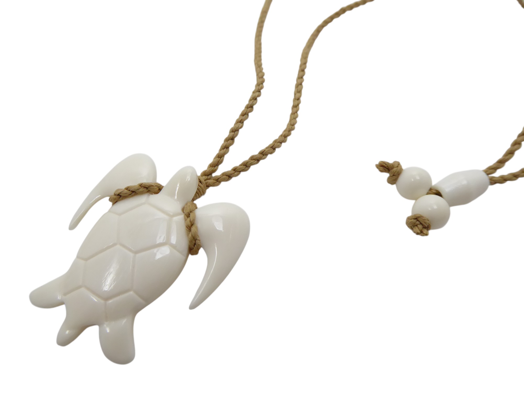35x40mm Buffalo Bone Turtle w/ Adjustable Hemp Cord Necklace