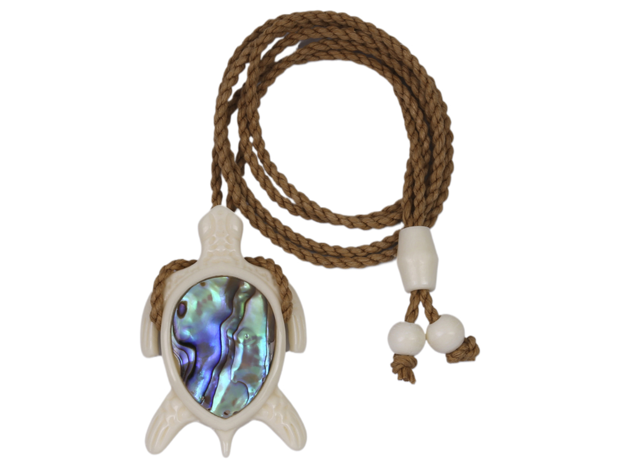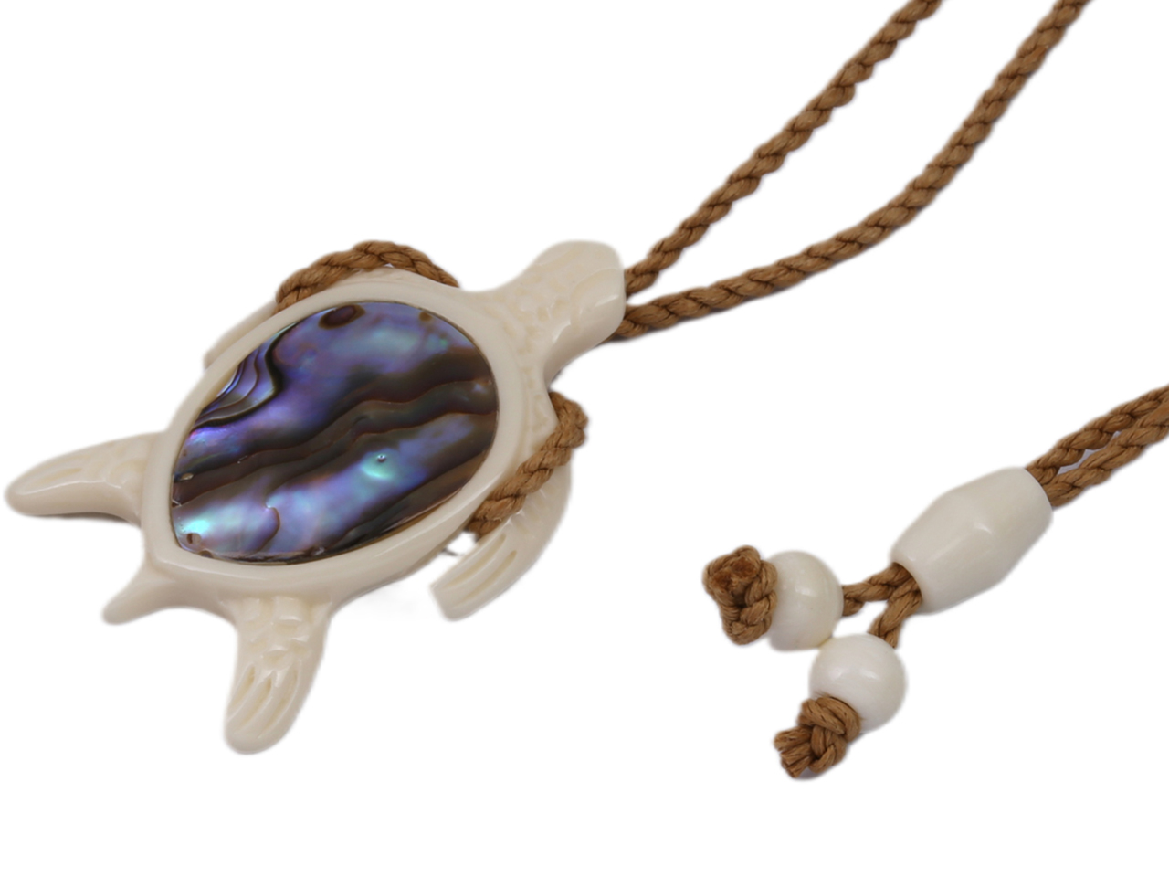 35x47mm, Buffalo Bone Turtle w/ Abalone Shell on Adjustable Hemp Cord, MOQ-6