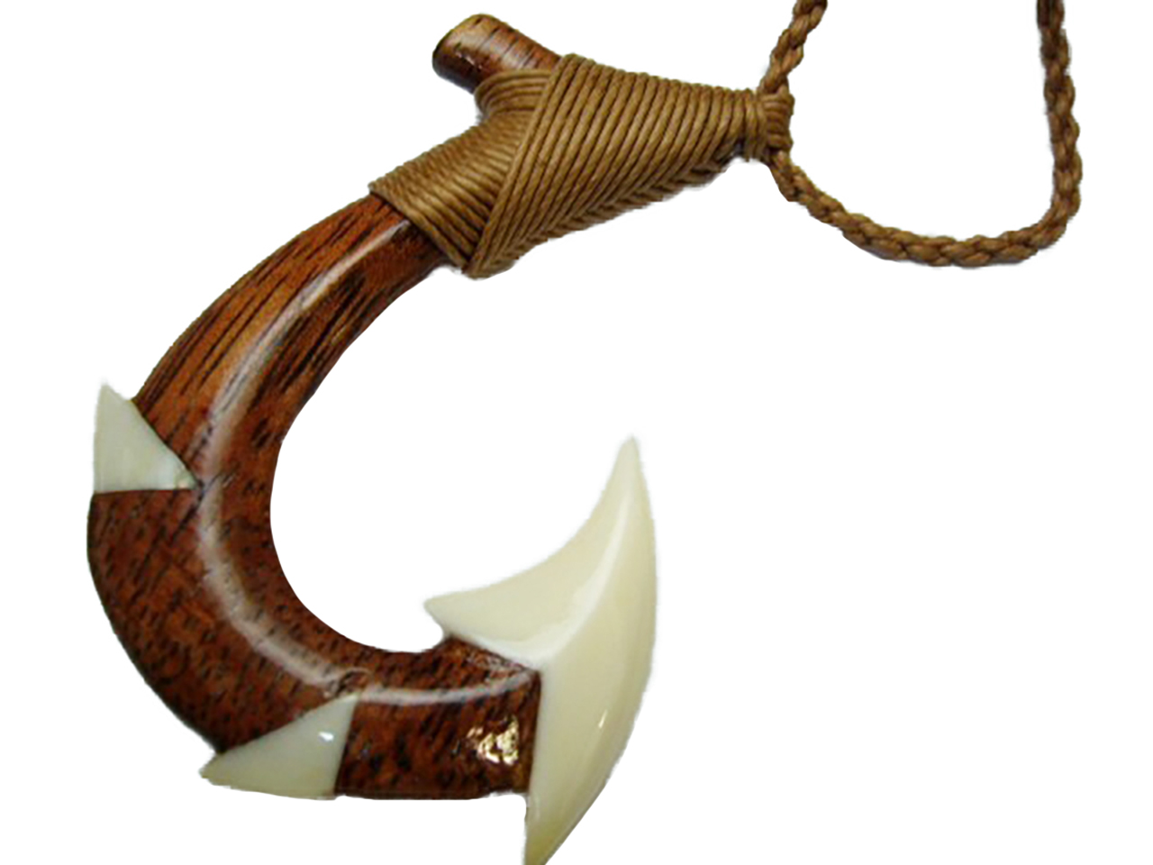 Natural Koa wood fish hook/buffalo bone with adjustable brown cord