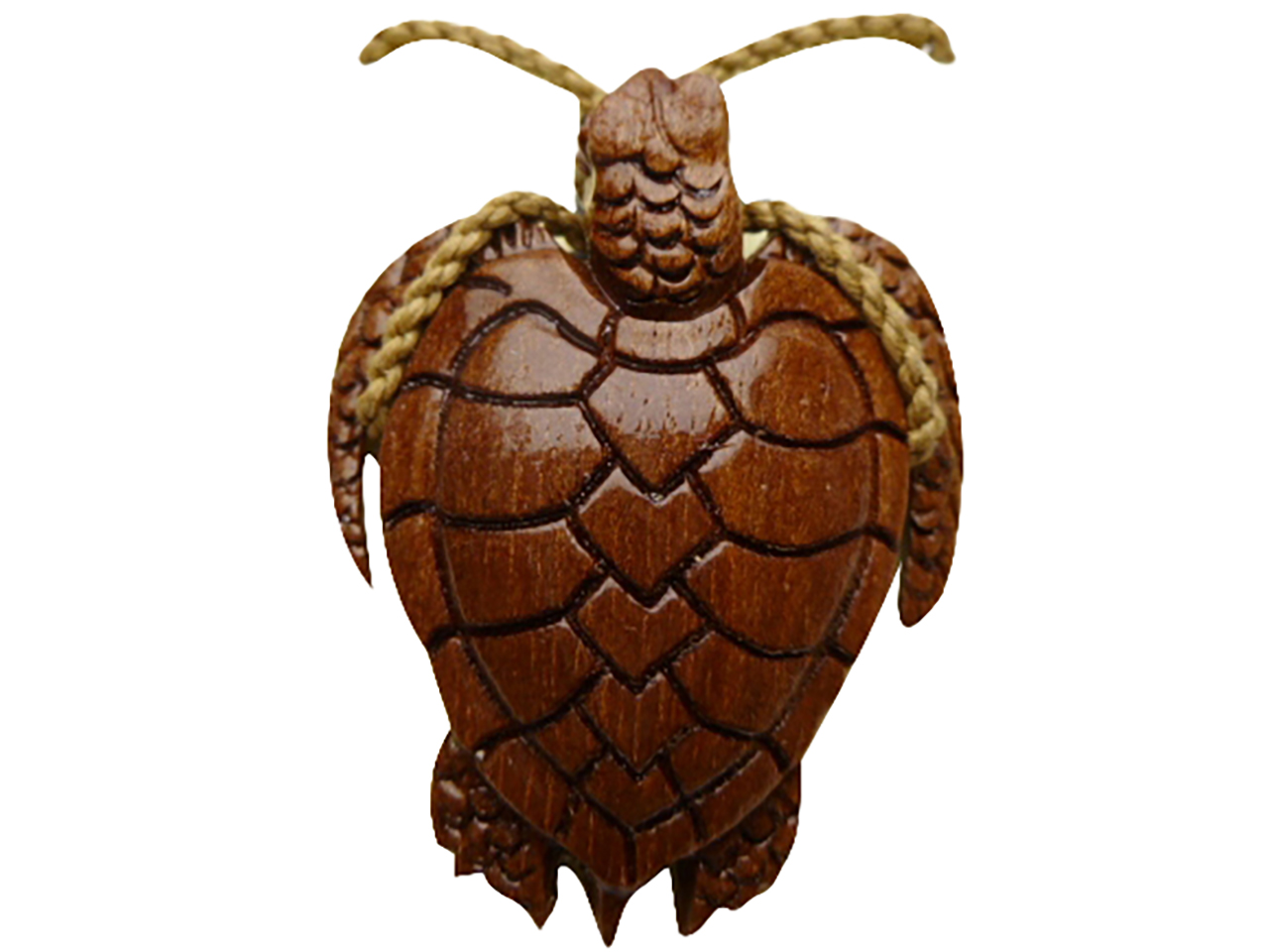 33X40mm Koa Wood Turtle Pendant w/ Brown Adjustable Cord