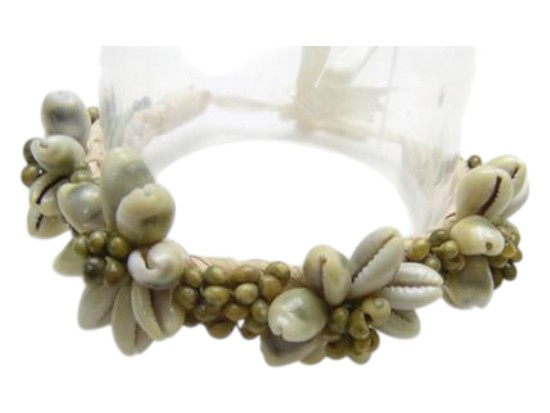 Green sigay (cowry) shell with green mongo shell raffia bracelet