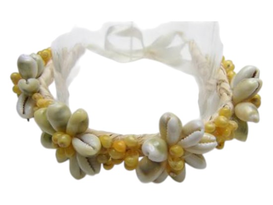 Green sigay (cowry) shell with yellow mongo shell raffia bracelet