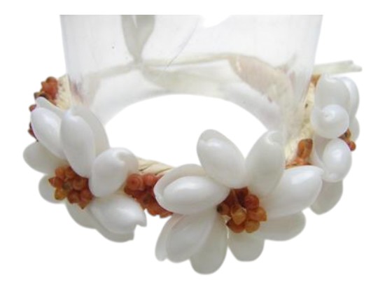 White Bubble Shell w/ Red Mongo Shell Raffia Bracelet