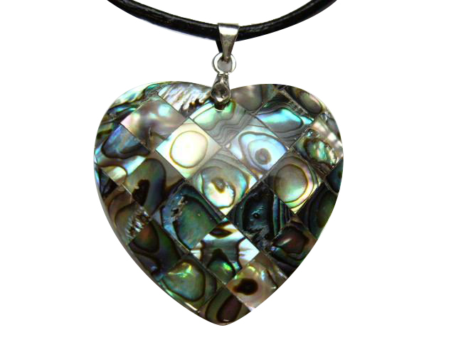 40mm Heart mosaic paua shell pendant with 2mm 16" leather cord necklace