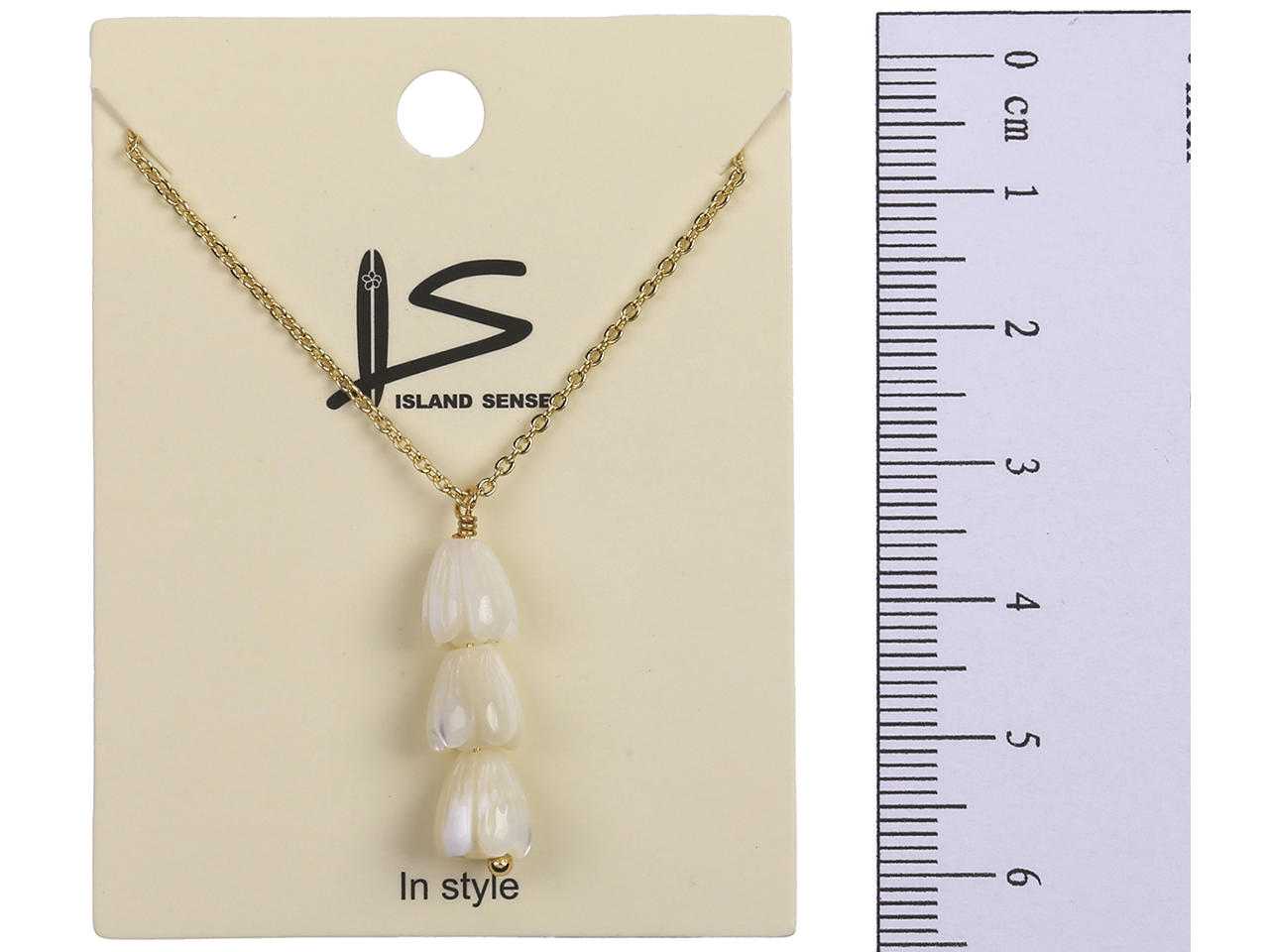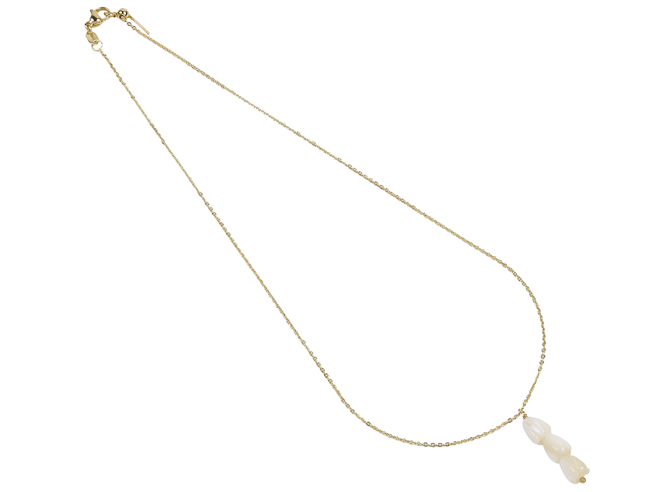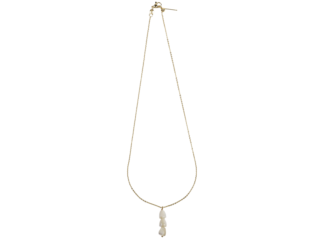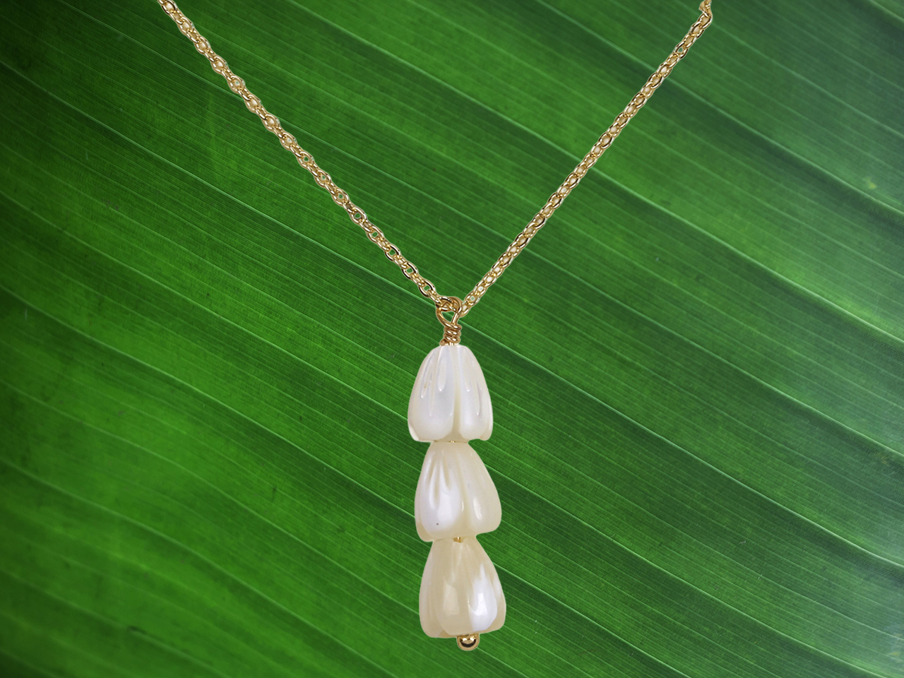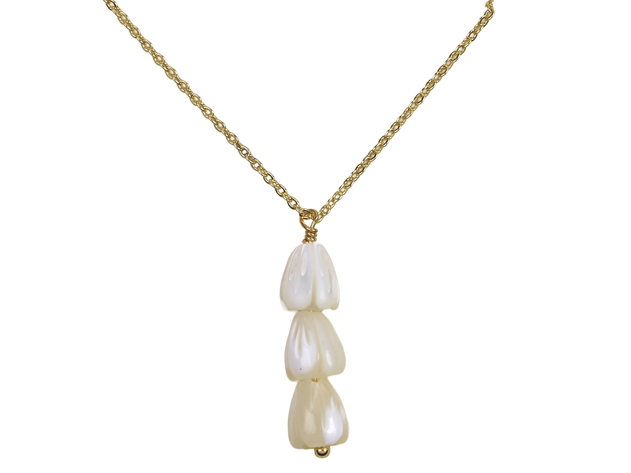 6x8mm Triple MOP Pikake Flowers Pendant on 16″+2″ Ext. Gold Tone Chain Necklace, MOQ-6