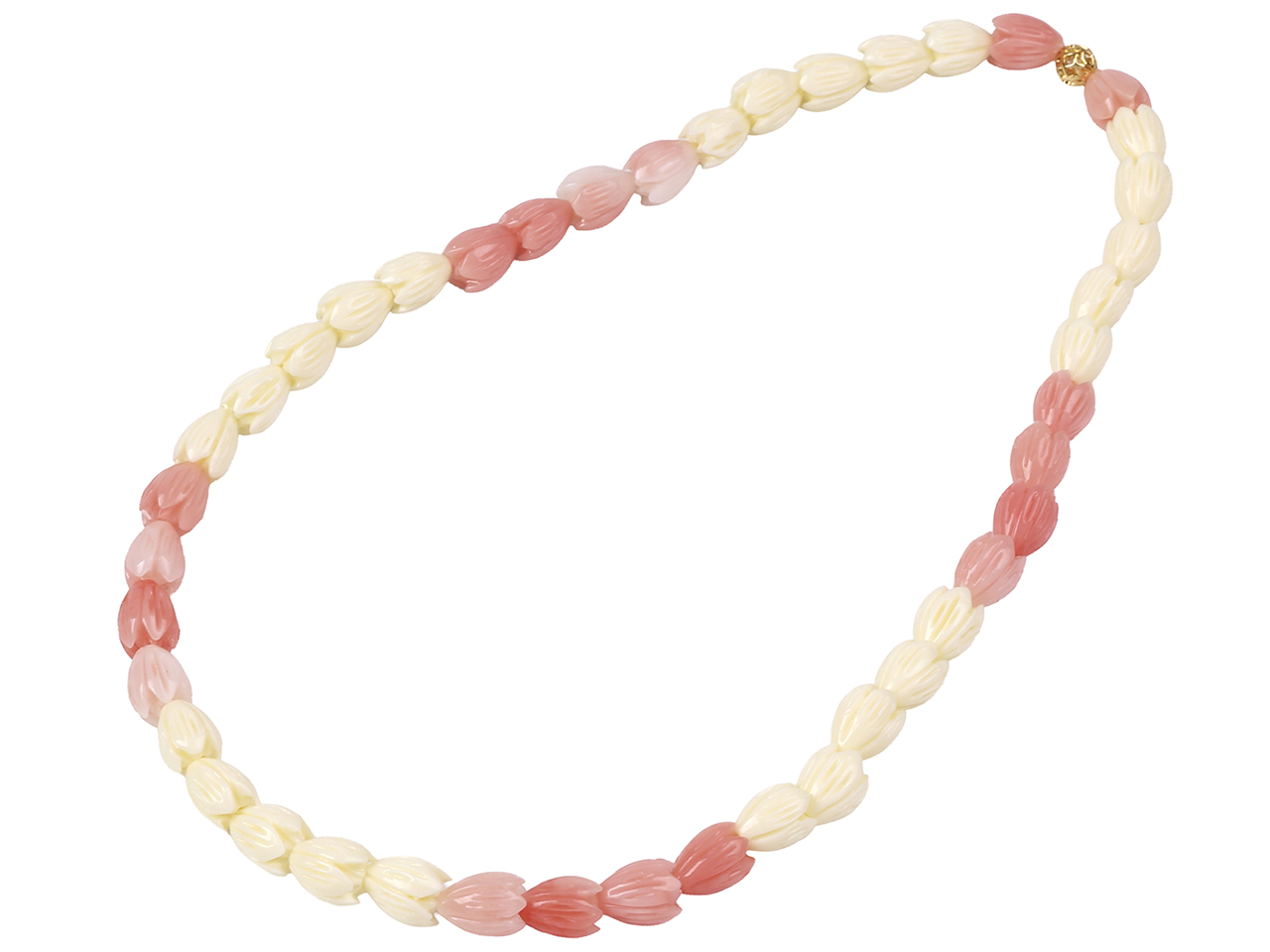 Pink & Cream 8x10mm Synthetic Pikake Flower Necklace 16+2″ w/ Gold Tone Claps, MOQ-3