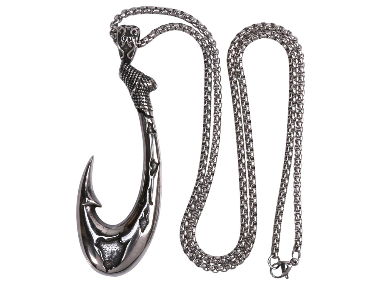 3x8cm Fishhook w/ Island Map on 24″ Stainless Steel Necklace, MOQ-6