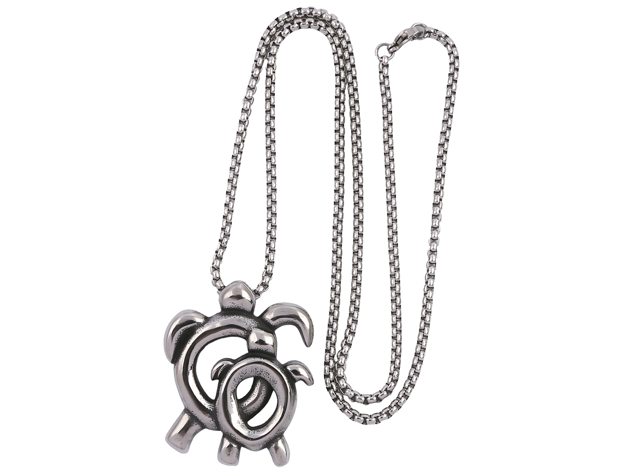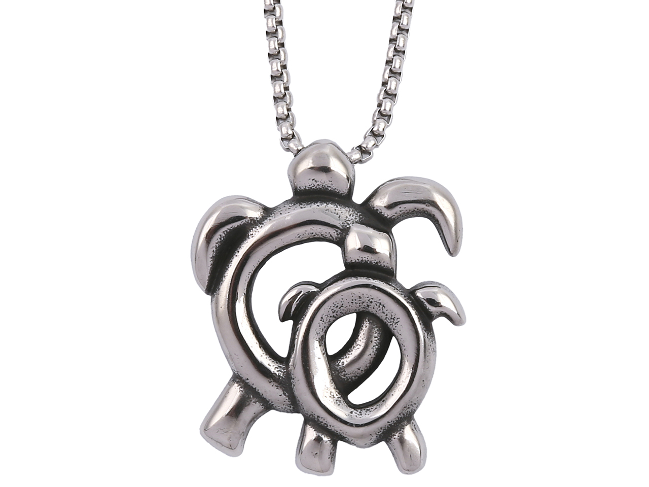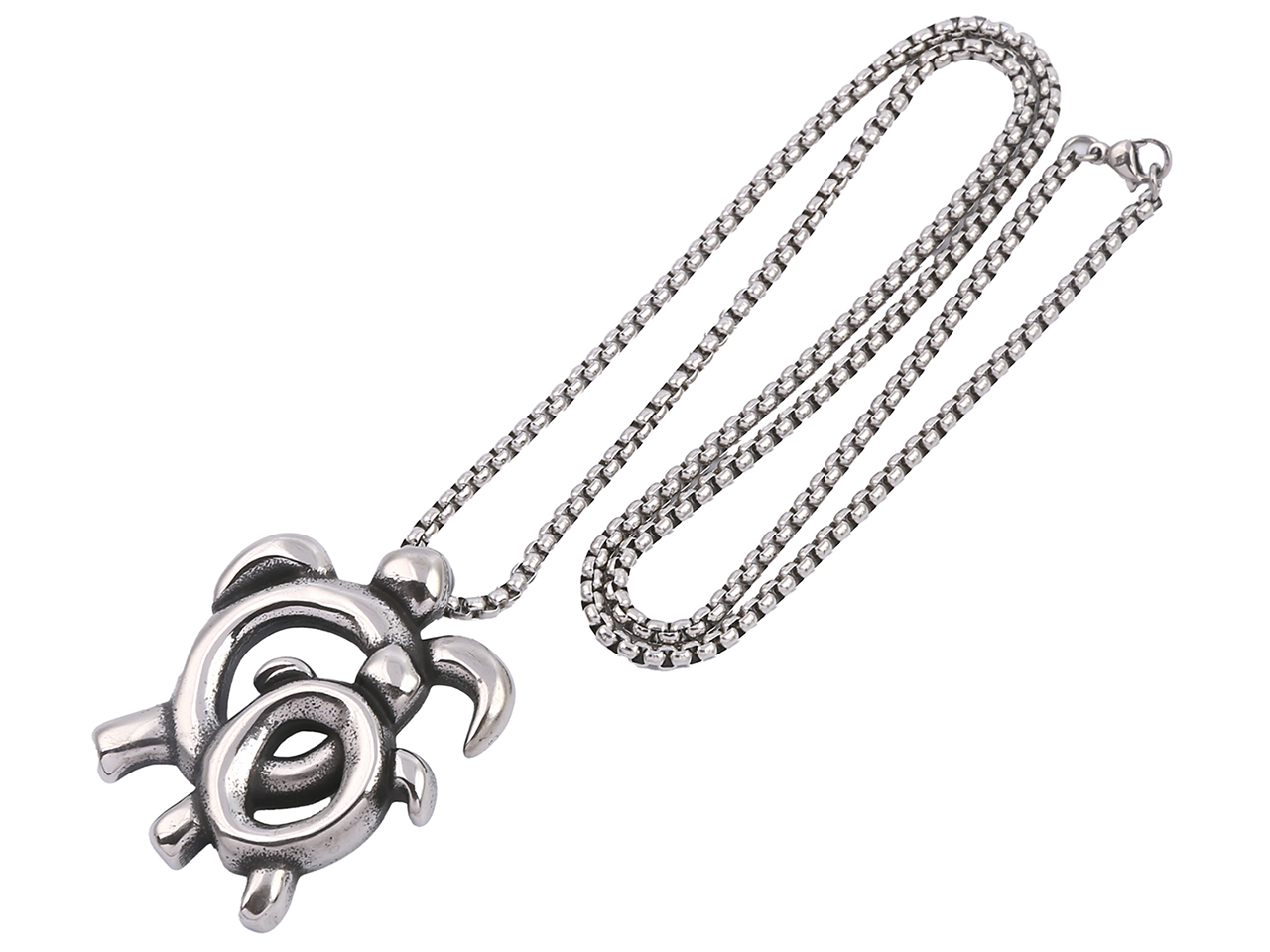 4x4cm Tribal Turtle Family w/ 24″ Stainless Steel Necklace, MOQ-6