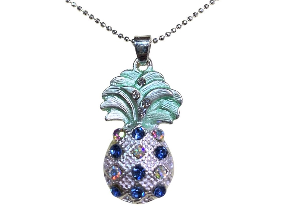 28mm Fashion Silver Pineapple w/ C.Z Stone w/Ball Chain 18″