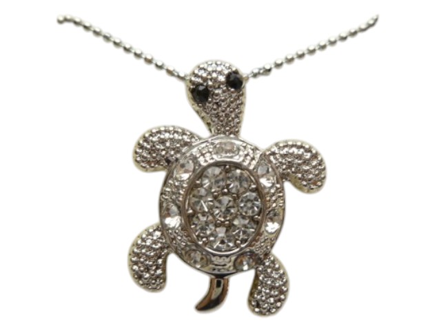 30mm Fashion White C.Z.Crystal Stone Turtle Pendant w/Ball Chain