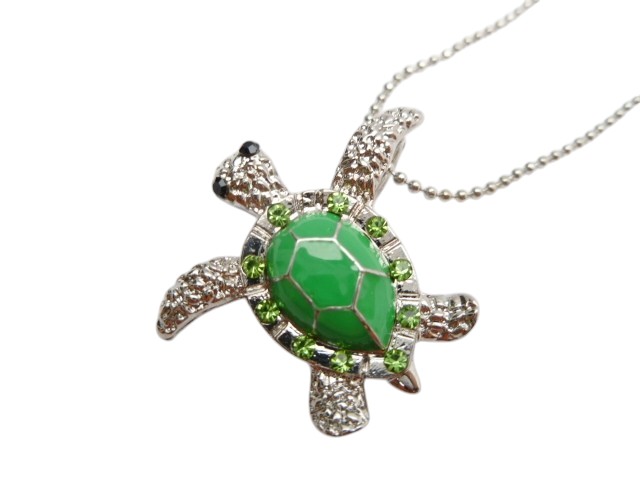 Green Turtle w/Green CZ Crystal Pendant w/ 18KGP Metal Chain 18″